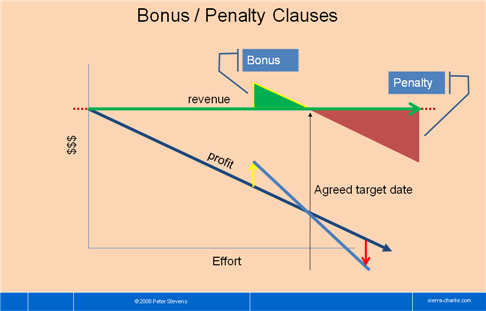 Structure: Supplier receives a bonus if the project completes early and pays a penalty if it arrives late. The amount of bonus or penalty is a function of the delay