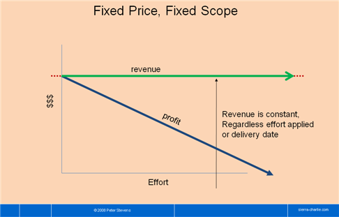 Risk: Obvious risk is on the side of the supplier. If the estimates are wrong, the project will lose money. Less obvious risks are the change request game, through which the supplier negotiates additional revenue through scope changes. If the supplier had badly underestimated the effort or risk, or quoted an unrealistically low price, the losses can even threaten the existence of the supplier, which also presents a problem to the customer.